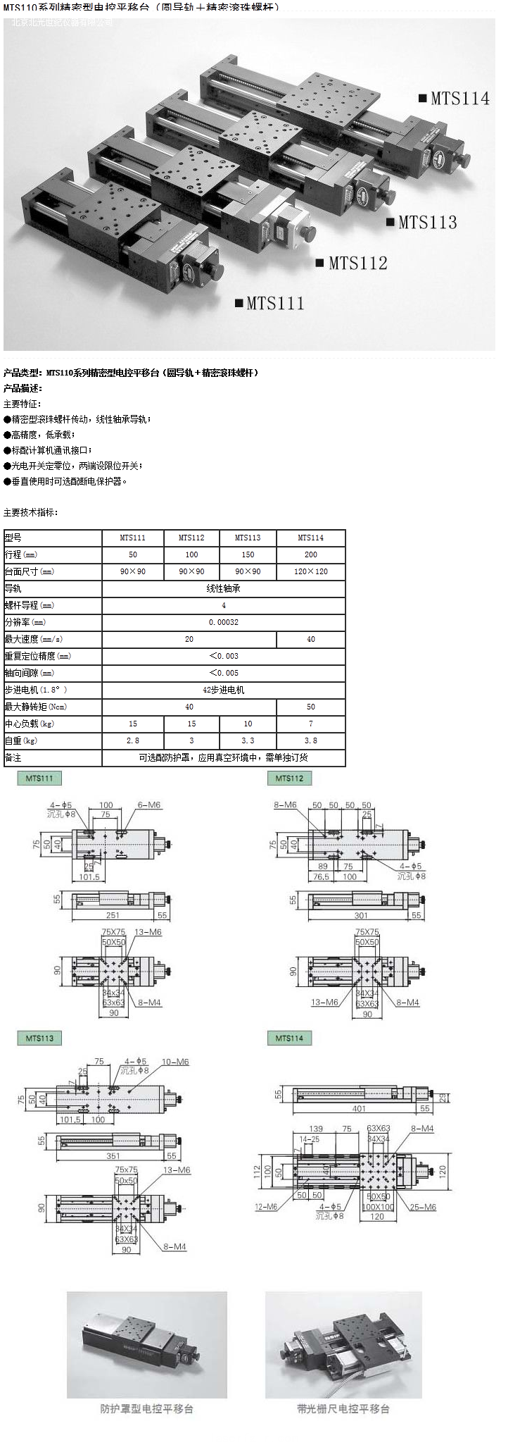 MTS110系列精密型電控平移臺(tái)(圓導(dǎo)軌+精密滾珠螺桿)