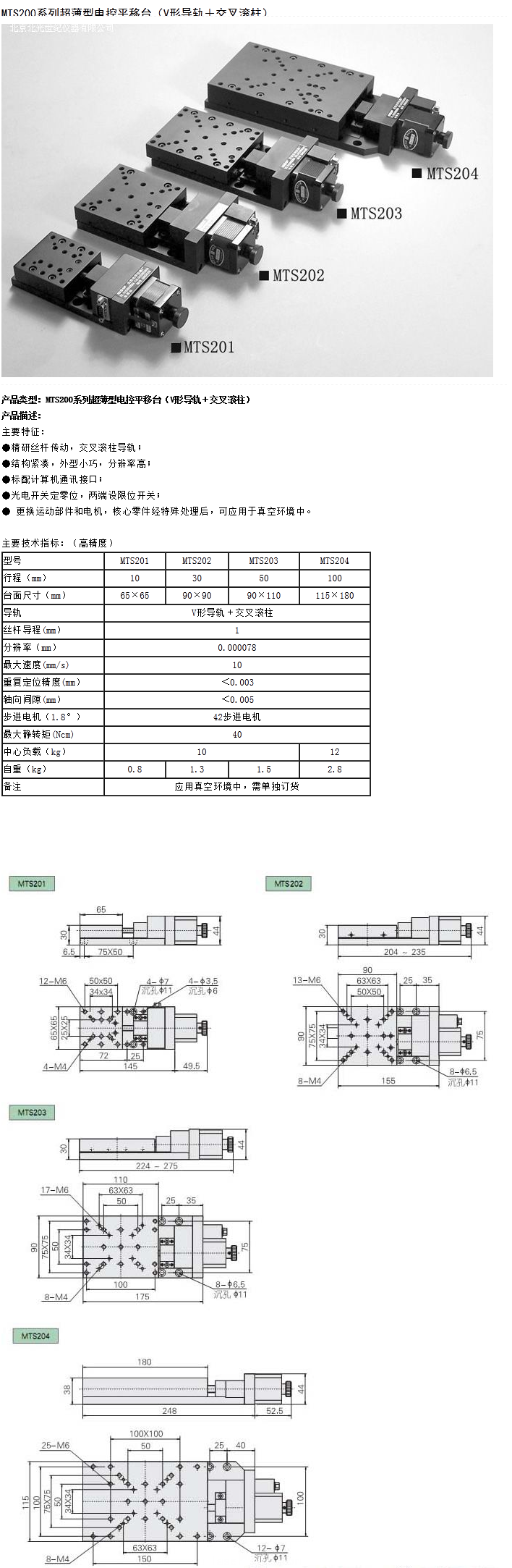 MTS200系列超薄型電控平移臺(V形導軌+交叉滾柱)
