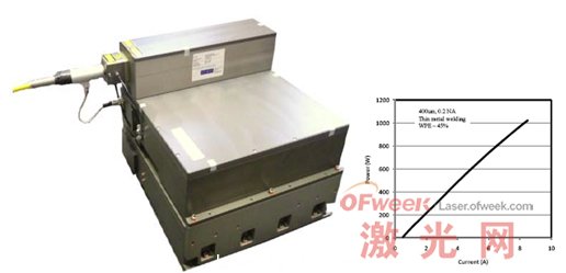 這種激光模塊也可被用作基礎物料來完成大于1000W的光功率。一個原型KW-class激光模塊在圖6中顯示。該裝置耦合1000W的光功率到40mm-mrad 光纖。