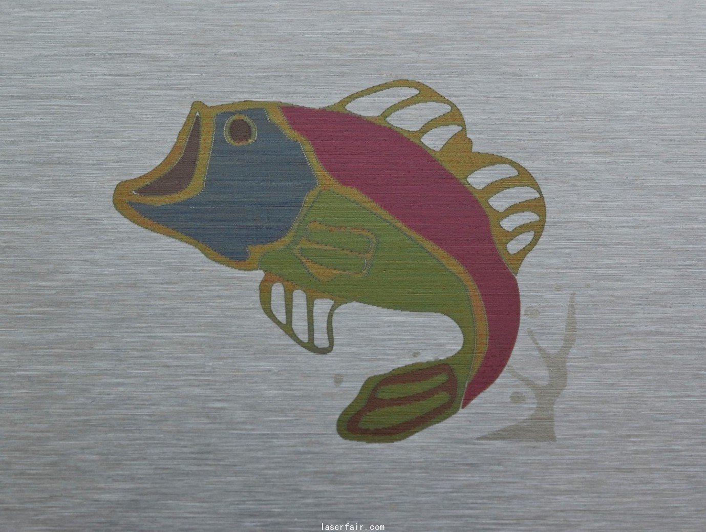 但是世界并不是黑白的,激光器是否能夠打出彩色的標記呢?完全可以,在不用任何色素或者添加劑的情況下,僅僅靠改變光的能量,我們就可以利用激光器在不銹鋼表面打出彩色的標識。原理是在不銹鋼的局部表面,生成一層厚度受到精確控制的氧化膜。由于衍射效應,不同厚度的氧化膜便可以呈現不同的顏色。但這一技術目前還只在科研上實現,并未形成廣闊的市場和工業應用,因為其加工速度很慢而且其色調很難復制或者匹配PANTONE(國際色卡)標準。但是它的確是極具視覺沖擊的,并且是激光光源穩定性和通用性的一個很好的例證。