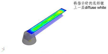 步驟一) 首先, 從FRED光源庫中選取一顆LED作為光源。 步驟二) 導入由CAD軟件設計的指針文件,并將指針和蓋子的材料特性賦予成PMMA 。 步驟三 追跡由LED發出的10000條光...