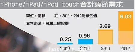 今年光學鏡頭廠之所以打破原來各占山頭的生態,最主要的關鍵是因為蘋果龐大的訂單量,已讓主攻智能手機戰場的大立光與玉晶光產能忙得焦頭爛額,光是一支iPhone今年出貨量年增率就高達七成,更遑論iPad的龐大需求。