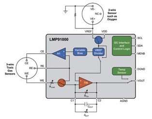就在幾個月前,有兩款傳感器AFE系列的器件推出:分別為用于溫度傳感器及低速橋型配置測量的LMP91000和用于氣體傳感器的LMP90100。