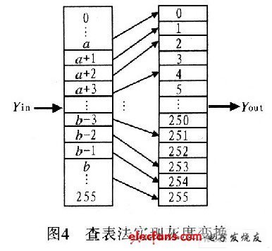 用硬件實現浮點運算效率較低,這里采用查表的方法,在YCbCr空間進行灰度變換,如圖4所示。