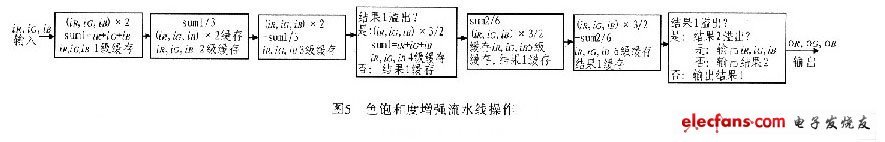 色飽和度調整在RGB空間進行,設計為流水線操作,如圖5所示。