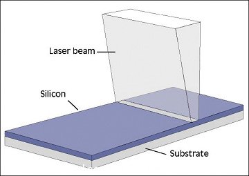 圖8. 基于準分子激光的硅退火工藝原理圖,這種工藝可以將厚度大約50nm的非晶硅轉(zhuǎn)變?yōu)榫哂懈唠娮舆w移率的多晶硅。