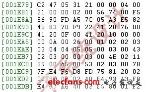 圖4:讀入DSP內(nèi)存的68013A固件程序數(shù)據(jù)(部分)。