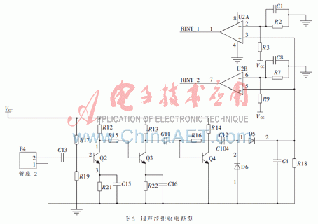 超聲波接收電路主要由接收頭、三級三極管放大電路和包絡檢波電路、濾波電路等組成,其電路如圖6所示。當接收到超聲波信號時,計數器立即停止計數以計算出時間差T。