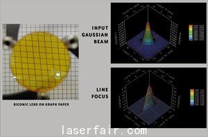 雙錐透鏡在同一表面上有兩個(gè)不同的半徑。根據(jù)不同的應(yīng)用領(lǐng)域以及是否需要消除象差,可以制作由球面或非球面分別構(gòu)成的雙錐透鏡。雙錐透鏡用來生成橢圓形或線性聚焦。這些透鏡還可以用在校形擴(kuò)束鏡中,用來降低激光光束的象散。許多波導(dǎo)型激光器都會(huì)產(chǎn)生象散光束,而大多數(shù)激光應(yīng)用中需要的都是對稱的高斯光束,因此必須對象散光束進(jìn)行校正。