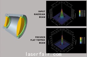 聚焦平頂雙透鏡 貳陸公司設計了一種形狀簡單的透鏡用于將光束由高斯模式轉換為平頂強度分布模式。