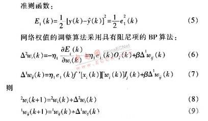 網絡的權值系數值V=[v1,v2,v3],即表征PID控制器的3個系數KP,KI,KD。,網絡的輸入為X=[x1,x2,x3],即表征3個輸入參數e(k)、△e(k)、△2e(k),網絡的輸出為△u(k)。
