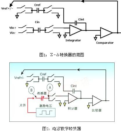 電容充電然后反過來提供給積分器,這樣積分器得到一個負的參考電壓。因此輸入端的高壓導致大量邏輯部分,它們反過來頻繁地運用(負)參考電壓。密度通過下面的數字濾波轉換成一個數字化的數值。經典的Σ-Δ轉換器將未知的電壓與已知的電壓相比較,即采用兩個已知的電容(通常相等)來作此比較。
