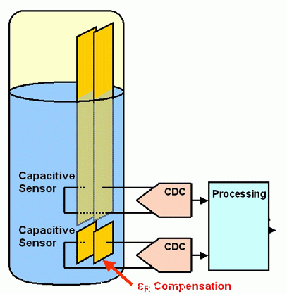 濕度傳感器是電介質傳感器的經典例子,使用濕度敏感聚合物層作為電介質。隨著濕度的增加,堆積越來越多的水分子,因此εr增大。傳感器檢測液體(如油或燃料)的純度,實質由兩塊固定的導板構成,液體自身形成電介質。必需的液體特性根據經驗來確定(例如:油或燃料中增加的水份)。溫度起到決定性的作用,也必須可靠地確定。測量電介質變化的簡單的接近傳感器,通常需要最復雜的測量電子學。