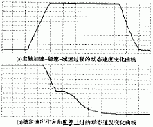 還有些機(jī)器數(shù)需要按位設(shè)置,如SP097,該參數(shù)按2進(jìn)制共有16位,從第0位到第F位,其中第1位與第0位的組合表示準(zhǔn)停旋轉(zhuǎn)方向,置01選擇正方向準(zhǔn)停;第3位置1表示準(zhǔn)停伺服期間主軸鎖定;第5位選擇編碼器檢測(cè)極性,置0;如其余位暫置為0,則SP097=0009H。參數(shù)整定后的加工中心主軸速度實(shí)測(cè)曲線如圖4所示。圖4a為主軸加速-穩(wěn)速(至1000r/min)-減速過(guò)程的動(dòng)態(tài)速度變化曲線,速度上升時(shí)間約為0.2s,超調(diào)量小于0.25%;圖4b為主軸從1000r/min的穩(wěn)定速度作定角度停止時(shí)的動(dòng)態(tài)速度變化曲線,曲線中間的恒速段為位置回路控制速度,標(biāo)志著主軸從速度控制模式變?yōu)槲恢每刂颇J剑鬏S在正常運(yùn)行速度下從準(zhǔn)停命令發(fā)出至準(zhǔn)停定位完畢約需要0.5s,過(guò)渡過(guò)程平穩(wěn)。主軸靜態(tài)性能為調(diào)速范圍達(dá)到3000∶10,無(wú)靜差。