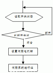 在沖床的工作過(guò)程中,要求機(jī)床滑塊升起后,伺服送料機(jī)構(gòu)才能開(kāi)始進(jìn)行送料,而在滑塊落下前,送料機(jī)構(gòu)必須完成定位過(guò)程。所以要求該系統(tǒng)的軟件部分必須使機(jī)床的滑塊與送料機(jī)構(gòu)之間的動(dòng)作協(xié)調(diào)一致。該系統(tǒng)利用MPC01卡的狀態(tài)查詢函數(shù)來(lái)判斷沖床滑塊的位置,來(lái)決定是否發(fā)命令給伺服電機(jī)進(jìn)行進(jìn)給運(yùn)動(dòng)。從而達(dá)到使滑塊和送料機(jī)構(gòu)之間的動(dòng)作協(xié)調(diào)一致。