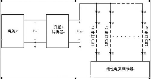 圖1.由升壓轉換器和線性電流調節器組成的LED驅動器