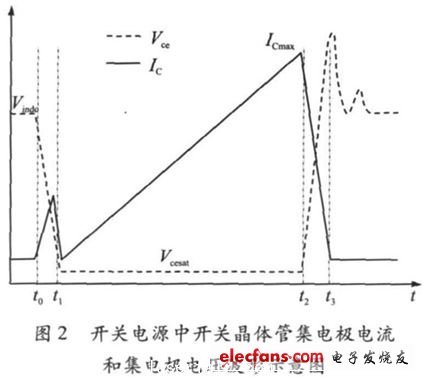 一般情況下, 關斷損耗在開關損耗中占的比率最大, 而關斷損耗跟開關晶體管的關斷延遲時間有關, 減小關斷延遲時間( t3 - t2 ), 加快集電極電流下降速度, 可以降低開關晶體管的總損耗。