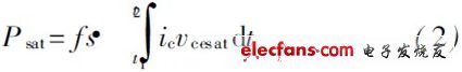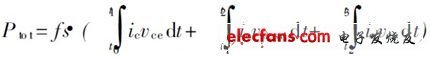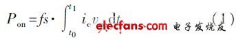 在晶體管導通后, 集電極電流從0逐漸變大, 而Vcesat不為0, 因此產生通態損耗。通態損耗可以表示為: