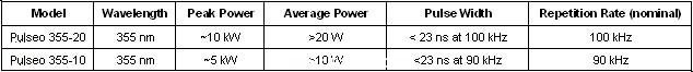 Pulseo 激光器產品: