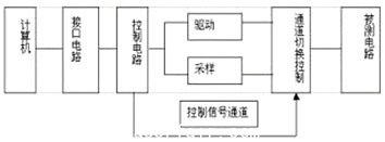 計(jì)算機(jī)主要用于控制測試系統(tǒng)以及對數(shù)據(jù)的分析,整理和保存。測試部分主要包括主控電路和8個輔助電路兩部分。測試部分的基本結(jié)構(gòu)如圖2所示: