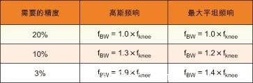 表1:根據需要的精度和示波器頻率響應的類型計算示波器所需帶寬的系數