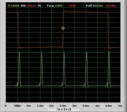 圖12. 雙蹤雙通道、10×探頭:375 kHz、5 V p-p方波和1.5 MHz、42 ns 5 V p-p脈沖