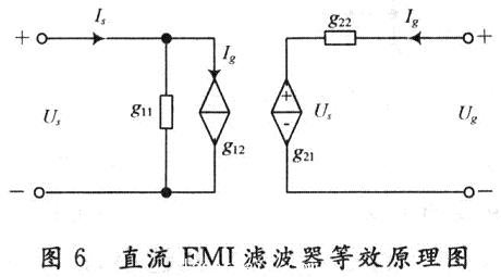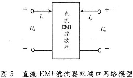 直流EMI濾波器雙端口網絡模型如圖5所示,其混合參數方程為: