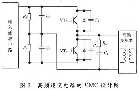 高頻逆變電路的EMC設計如圖3所示。