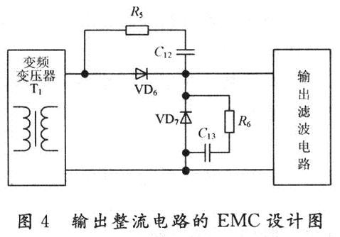 輸出整流電路的EMC設計如圖4所示。