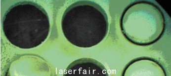 工業界對陶瓷切割需求很大。在電子行業里,很多薄基板材料是通過劃線、打破或切削來進行切割的。同樣,材料的吸收率也是限制因素之一。關鍵材料是氧化鋁和氮化鋁,它們能被1um激光切割的能力取決于材料的特殊性和表面光潔度。下圖為綠色的氮化鋁從基板上快速的被切割出來。(圖2和圖3)