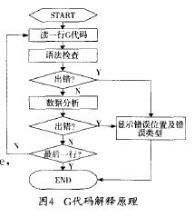 G代碼解釋的原理如同4所示。程序中定義了兩個數據結構PreGCode和GCode分別用來保存語法檢查后的中間結果和數據分析后生成的G代碼類型、節點坐標、圓弧半徑等數據,供仿真和加工使用。