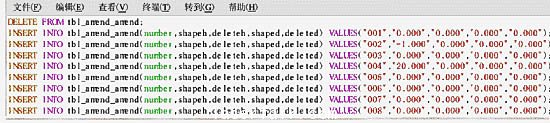 創建一個表后,可使用SQL語句INSERT命令向表中填入數據,但這種方法當數據量大時會耗時很多。因此作者采用批處理模式向表中填入數據的方法,具體作法是:首先創建一個存儲SQL語句的文本文件amend_data.sql,如圖1所示;然后執行SQL語句: