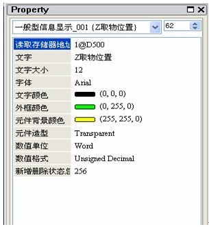 使用一般型信息顯示組件,將新增刪除狀態總數設置成256如下圖,數值單位WORD讀取地址D500通過更改組件編即對應D500數據區數值來顯示用戶所編寫的工藝程序。