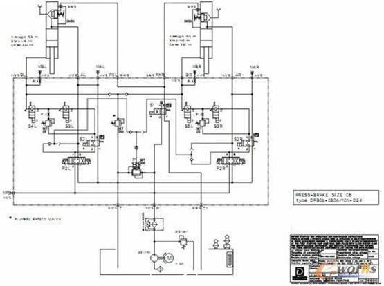 數控折彎機主要為上活塞式壓機,其主要工作特點是,由兩只平行運動的工作液壓缸形成垂直向下的壓力,以驅動折彎梁上的模具進行折彎工作。其數控式迪普馬液壓控制系統,主要是控制折彎過程的同步運行和液壓缸在機器滿負荷工作時在下死點的定位。