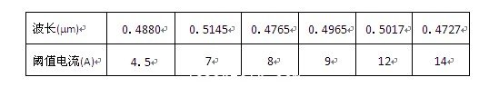 Ar+激光器可以產(chǎn)生多條激光譜線,對(duì)應(yīng)每條譜線都有一個(gè)閾值電流,表5-1列出了在放電管長(zhǎng)為