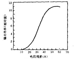 由于Ar+激光器特殊的激發(fā)機(jī)制,其輸出功率隨放電電流的變化規(guī)律與其它激光器有所不同,圖(1)示出了其間的關(guān)系曲線。由該曲線可見(jiàn),當(dāng)放電電流較小時(shí),輸出功率與放電電流約成四次方關(guān)系。隨著放電電流的增大,輸出功率逐漸變?yōu)榕c放電電流成平方關(guān)系。這是因?yàn)椋S著電流密度的增大,使氣體的溫度升高,激光譜線變寬,因而其增益隨電流增長(zhǎng)的速率變慢。