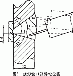 b. 橫焊。坡口選用不對稱"v"型坡口,具體坡口形式及尺寸如圖3 所示。焊前需處理坡口表面。