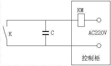 由于開關K離接觸器KM較遠,兩根電線很長導致其分布電容C將變得很大,在交流電路中,這個分布電容中將有位移電流流過,即使開關K斷開也可能因KM維持能量不需太大而導致KM不釋放,設備停不下來,此時,可以按以下方法解決: