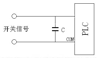 有時PLC或其它控制器的開關量輸入由于受外界干擾影響而瞬間輸入錯誤,導致PLC產生誤動作,這時在PLC的輸入端并上一個0.1uF的小電容就可以消除這種干擾,如下圖所示:
