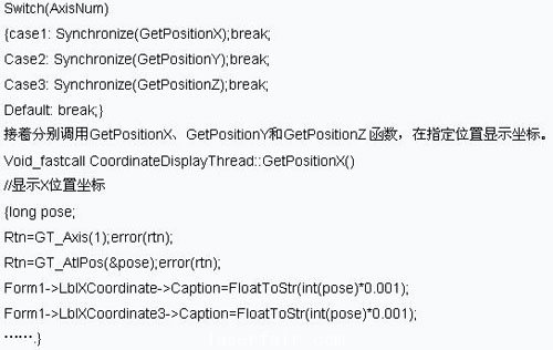 在CoordinateDisplayThread.cpp文件中的CoordinateDisplayThread::Execute()函數(shù)里添加如下語句,實(shí)現(xiàn)X、Y、Z坐標(biāo)顯示函數(shù)調(diào)用的一致性。