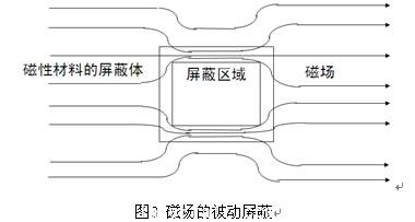 磁場屏蔽主要是依賴高導磁材料所具有的低磁阻對磁通起到分路的作用,使得屏蔽體內部的磁場大大減弱,圖3說明了這一原理。
