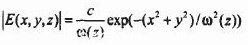 高斯光束沿z軸橫截面的場強分布可以表示為: