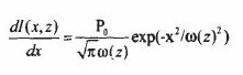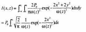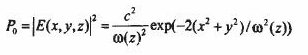 式中Po為激光的總功率,ω(z)為按強度1/e2所定義的束腰半徑,對于高斯光束場并不局限在束腰半徑范圍內,理論上它橫向延伸到無窮遠,只是大于束腰半徑的區域內光強很弱。