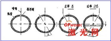 2)調整激光切割頭,使切割頭光軸位于過管軸的垂直面內,并使切割頭氣體噴嘴位于管體最高點處;