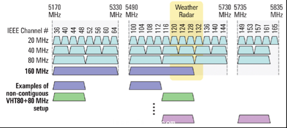 圖1. IEEE 802.11 ac在美國(guó)地區(qū)的頻帶分布