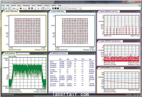 802.11ac的一些新的特性使得測(cè)試這些產(chǎn)品出現(xiàn)新的挑戰(zhàn),256QAM技術(shù)要求在接收和發(fā)射電路中有良好的矢量誤差(EVM),在星座圖測(cè)量中要求也更為復(fù)雜、精確。矢量信號(hào)分析設(shè)備,安捷倫89600 VSA軟件提供了詳細(xì)分析802.11 ac信號(hào)矢量信號(hào)的分析,以便洞察其信號(hào)出錯(cuò)情況,做出更好的調(diào)整和更改,同時(shí)還支持4x4的MIMO測(cè)量。