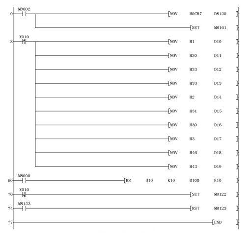 使用無順序協議需要對通訊規格D8120 進行設定。其中包含波特率,數據長度,奇偶校驗,停止位和協議格式等。這里對D8120設置如下: