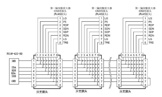 注:最后一臺伺服的放大器請短接TRE與RDN。