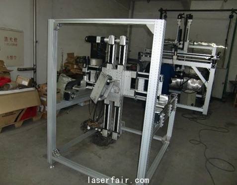 直角坐標機器人的三個直線運動軸除了采用防塵防水的鋼帶防護,里面的全部零件都不怕水,能保證機器人長期工作。圖3中的機器人是萊茵機電三年前交付給用戶,運回維護保養的五軸聯動機器人。