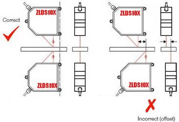 保證測量準確性的條件是:兩個傳感器發射光束必須同軸,以及兩個傳感器掃描必須同步(見本文附圖)。同軸是靠安裝實現,而同步要靠選擇有同步端激光傳感器。如真尚有ZLDS10X系列激光位移傳感器都有同步端。